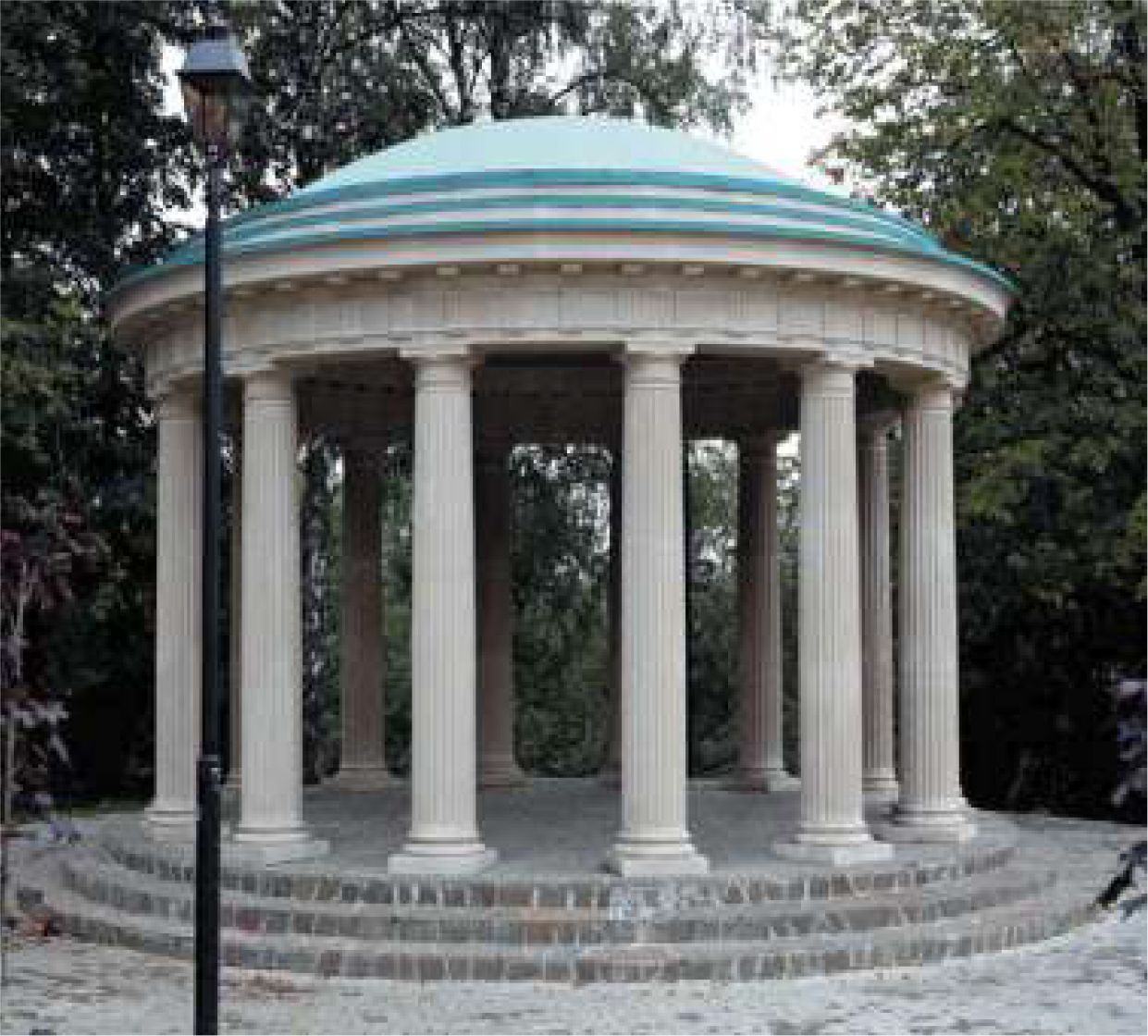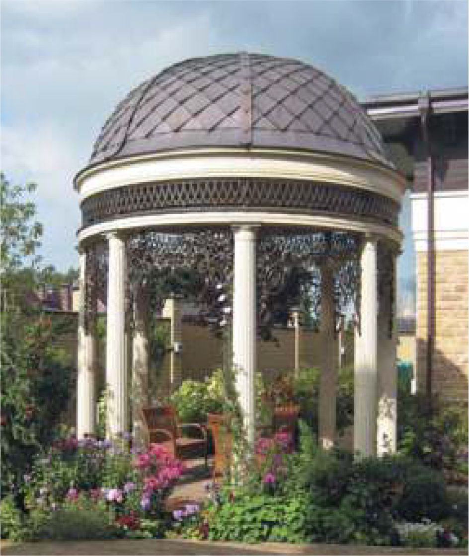 Строение является элементом ландшафтного дизайна, оно обязательно должно иметь купол, который по периметру поддерживают колонны. Дополняют постройку балюстрадами, скамьями, украшают различными элементами декора.